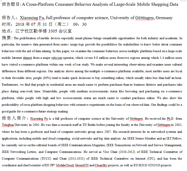 学术报告:A Cross-Platform Consumer Behavior Analysis of Large-Scale Mobile Shopping Data
