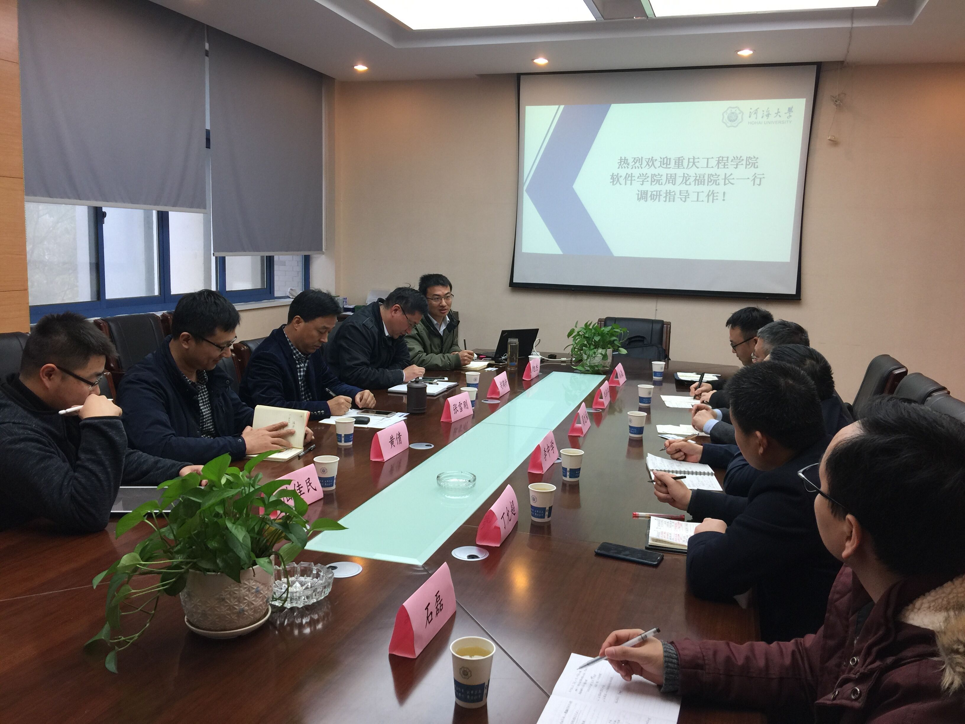 11月15日,重庆工程学院软件学院周龙福院长一行前来学院调研指导工作。我院党委书记张雪刚、副院长胡鹤轩及各系教师代表参加了座谈会。