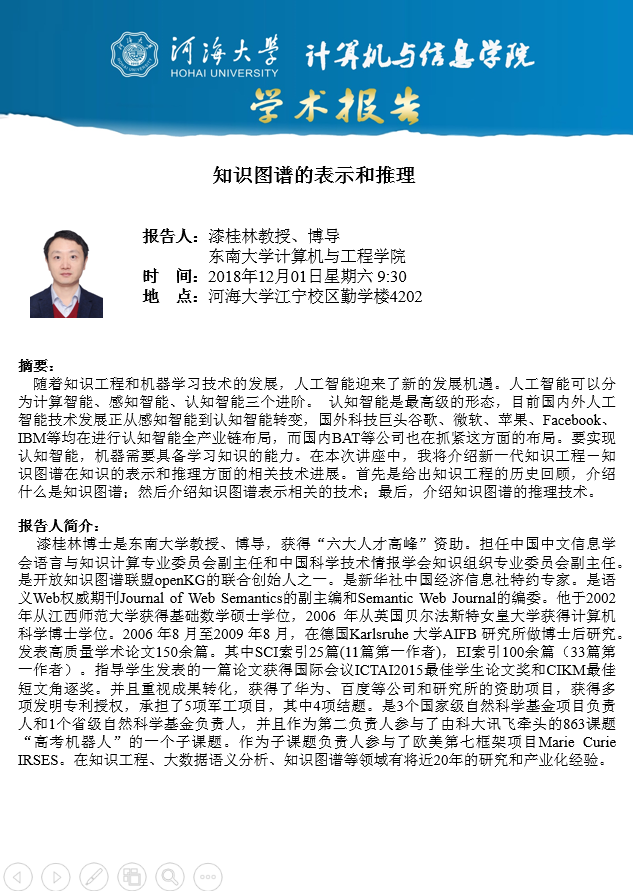 学术报告:知识图谱的表示和推理