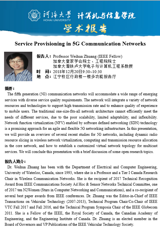 学术报告:Service Provisioning in 5G Communication Networks