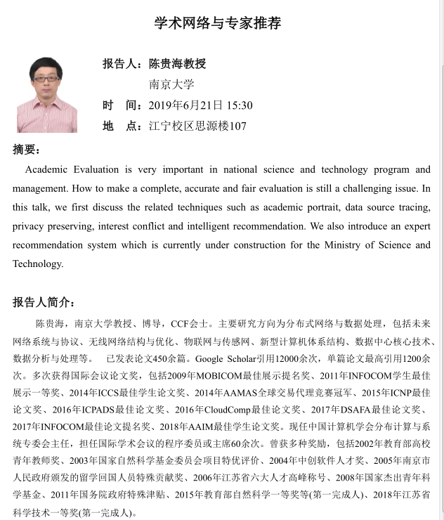 学术报告:学术网络与专家推荐