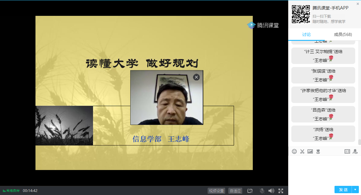 2020年6月18日晚,探花 信息学部党委书记王志峰以“读懂大学,做好规划”为主题向计信院低年级同学开展了一场职业生涯规划讲座。王志峰书记从对当代大学的认识、大学教育的作用、本科后目标分析、职业生涯设计和大学生涯管理五个方面进行了阐述,学院全体辅导员及近600名学生在线聆听。