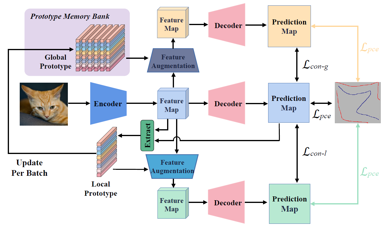 论文聚焦基于scribble标签的语义分割任务,针对scribble监督下边界区域不准确的问题提出了一种基于原型增强的语义分割方法。该方法利用已有的少量监督信息来提取特征原型,并利用这些原型来引导边界区域像素的分割。此外,该方法还设计了一个基于原型的特征增强器,利用原型对初始特征进行增强,生成增强后的特征,并通过引入一致性损失对特征之间进行约束。在PASCAL VOC 2012 Scribble标签数据集上,该方法在相同级别的骨干网络下,取得了77.9%的mIOU,创造了该任务下的最佳结果。这种标注方式可以大大减少专业知识和时间成本,使得在医学图像、遥感图像和伪装物体图像等领域中进行语义分割研究和应用更加便捷和可行。