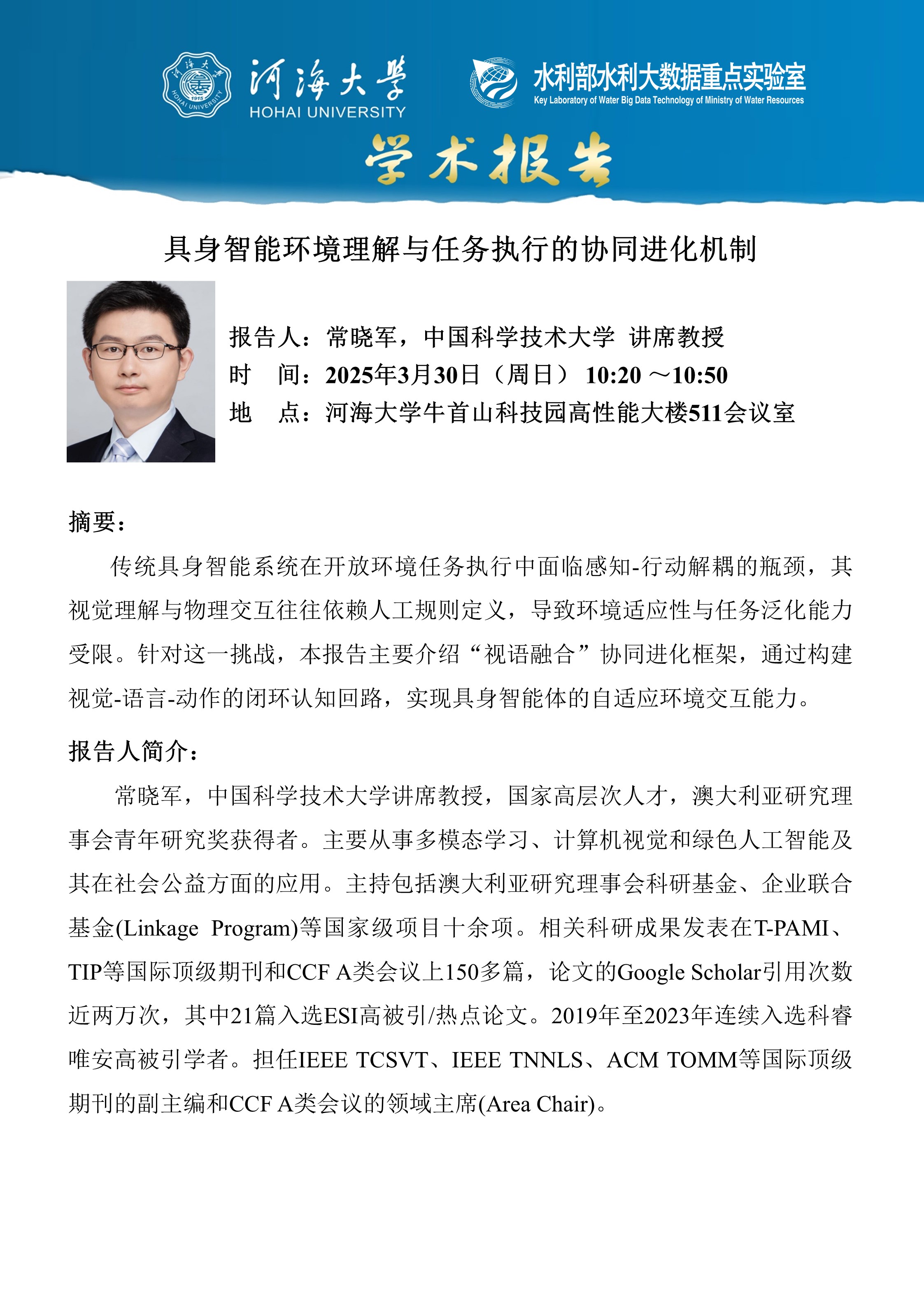 学术报告:具身智能环境理解与任务执行的协同进化机制