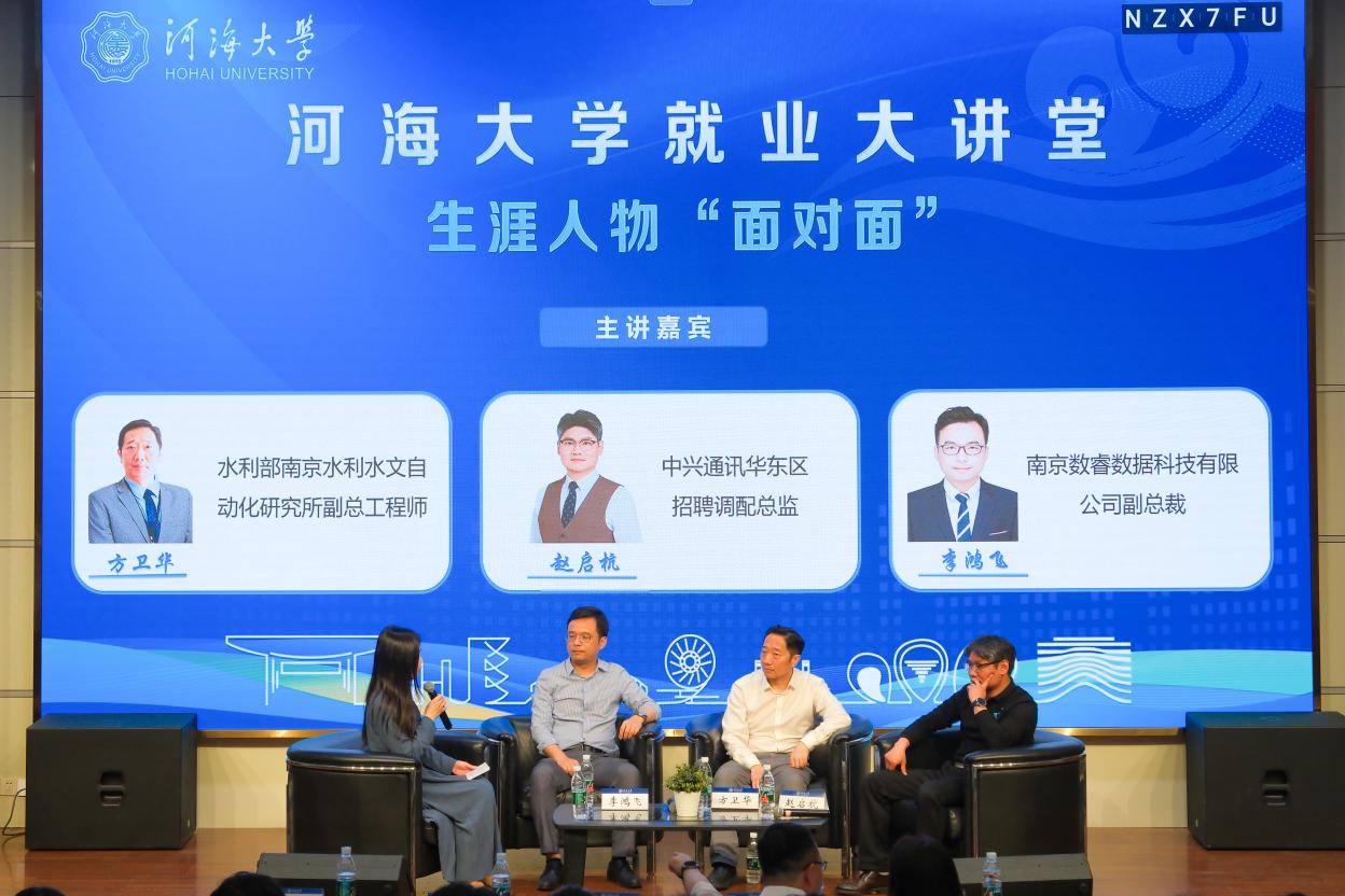 4月9日晚,由学校学生就业指导中心和探花 主办的探花 就业大讲堂之生涯人物“面对面”活动在江宁校区举行。本次活动特邀水利部南京水利水文自动化研究所副总工程师方卫华、中兴通讯华东区招聘调配总监赵启杭、南京数睿数据科技有限公司副总裁李鸿飞三位行业专家现场与300余名本科生、研究生同学分享职业生涯经验、解答职业发展困惑。探花 学生工作处副处长、就业指导中心主任王璐,探花 党委副书记张剑宇出席活动。